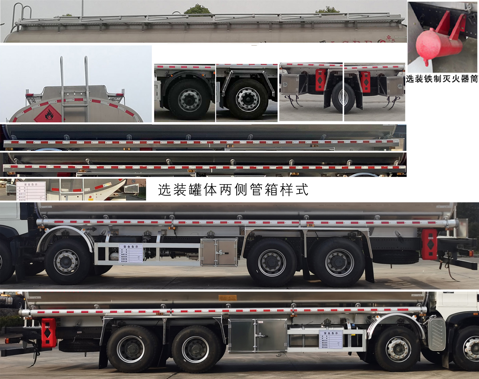 | 其它: | 该车适用于危险品运输,运送危险货物车辆类型为:FL型.准运介质最大密度:830千克/立方米,罐体总容量24.8立方米,罐体有效容积24.1立方米,罐体外形尺寸(长×宽×高)(mm):9200×2200×1500.仅采用轴距(mm):1800+4575+1400,1950+4600+1400的底盘改装.侧防护材料为铝合金,螺栓连接;后防护材料为Q235,螺栓连接,截面尺寸(mm)80×140,下边缘离地高500mm.仅选用排气管前置、限速装置(限速80km/h)、前轮盘式制动及子午线轮胎的底盘,转向轮安装轮胎爆胎应急防护装置,后轴采用空气悬架,安装带有卫星定位功能的行驶记录仪.EBS型号/生产厂家:EBS3/威伯科(上海)管理有限公司.发动机/油耗申报值(L/100km)对应关系为:MC11.43-61/36.70,MC11.44-60/37.12,MC07H.33-60/37.44,MC09.35B-60/38.01,MC09.35-60/38.30,MC07.31-60/38.13,MC07.34-60/38.13,WP10H400E62/36.40,MC07H.35-60/37.44,MC09.38-60/38.30,MC07.33-60/38.13,WP9H350E62/36.39,MC11.40-60/37.12,MC11.40-61/36.70,WP8.350E61/35.68,MC11.46-61/36.70,MC11H.46-61/38.01,WP10.5H430E62/37.99,WP12.430E62/37.42,WP12.490E62/37.42,WP12.460E62/37.42.该车可选装直接供电式ETC车载装置.随底盘选装驾驶室,选装铝合金轮毂,选装尿素箱、电瓶箱、储气筒、后处理安装位置。罐体上部选装上走道,第二轴选装弧形胶制挡泥板或方形挡泥板,选装左右侧后部工具箱及左侧工具箱样式,选装铁制灭火器筒,选装罐体两侧管箱样式. |