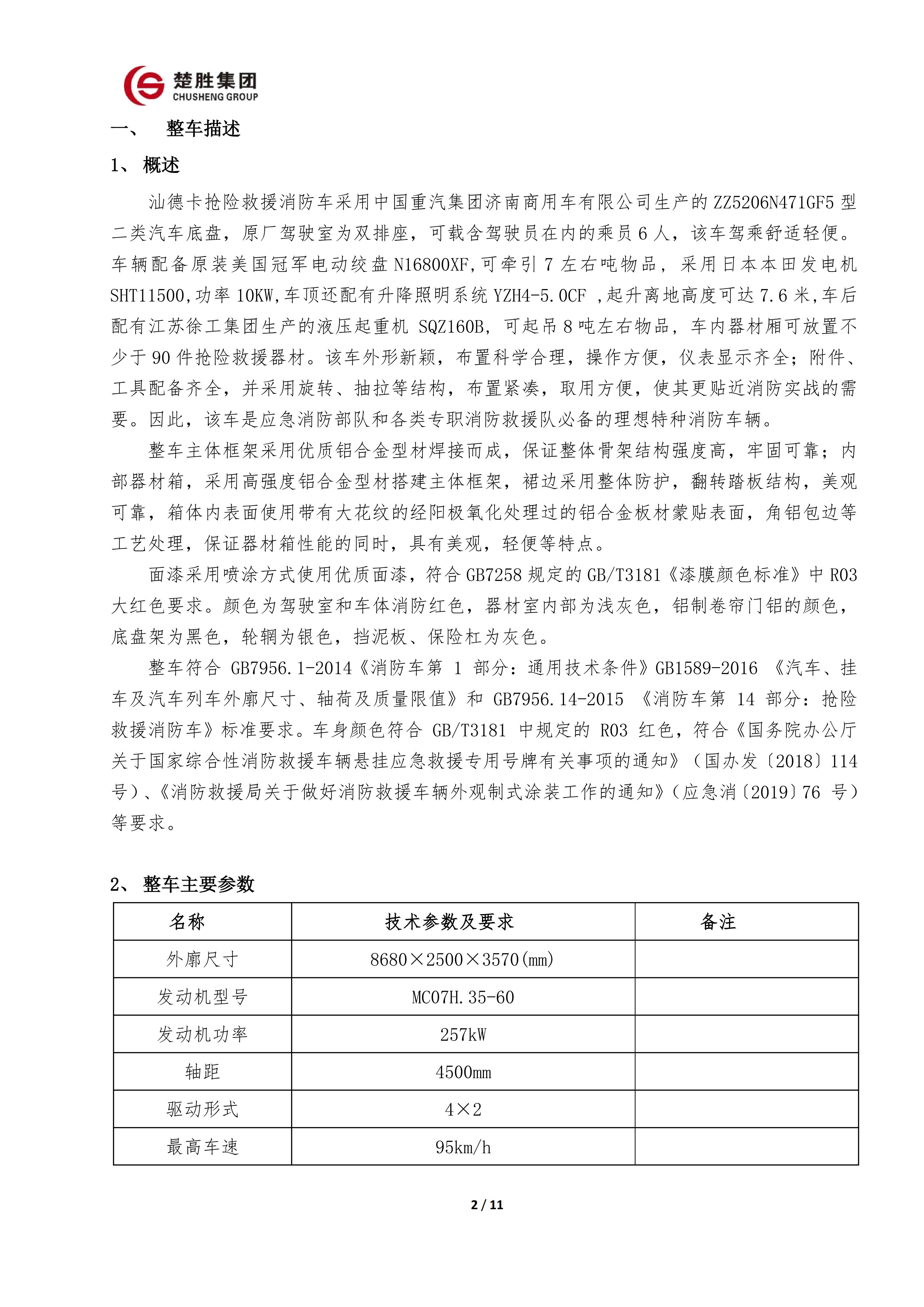 楚胜 CSC5140TXFJY90/S6型抢险救援消防车