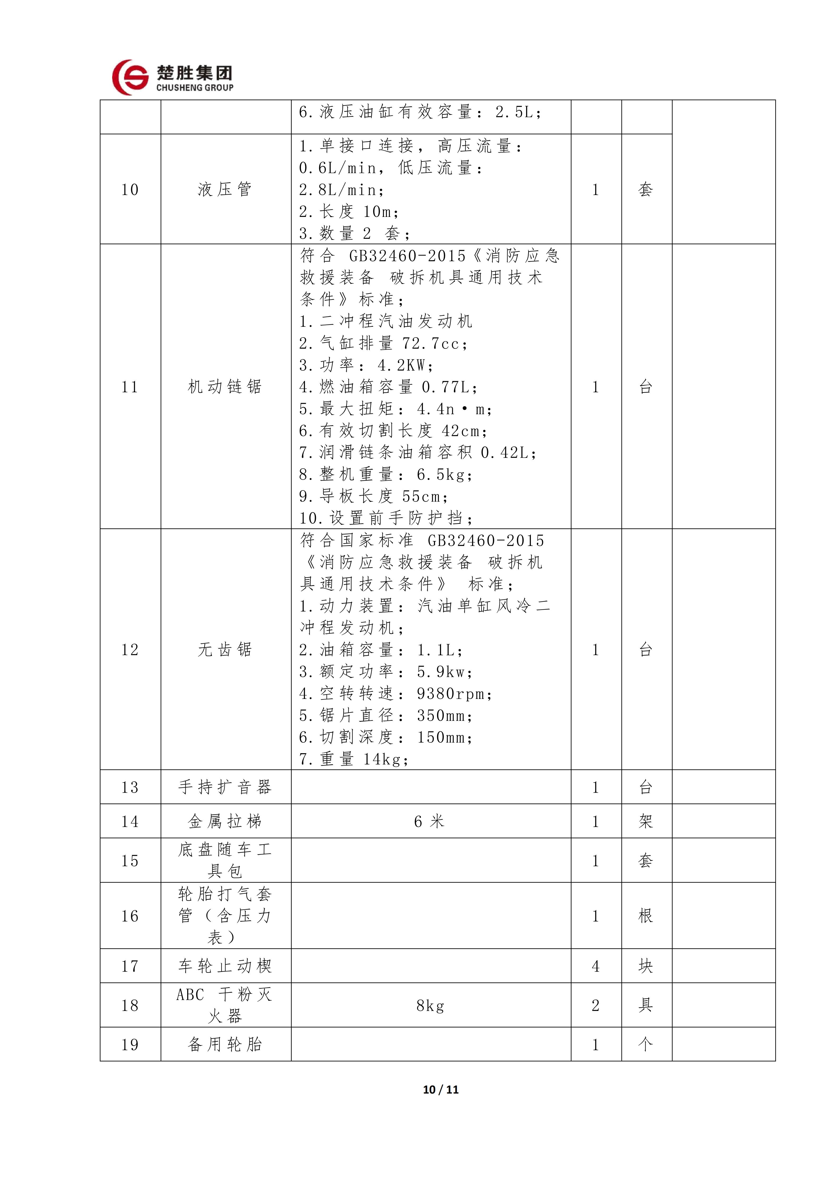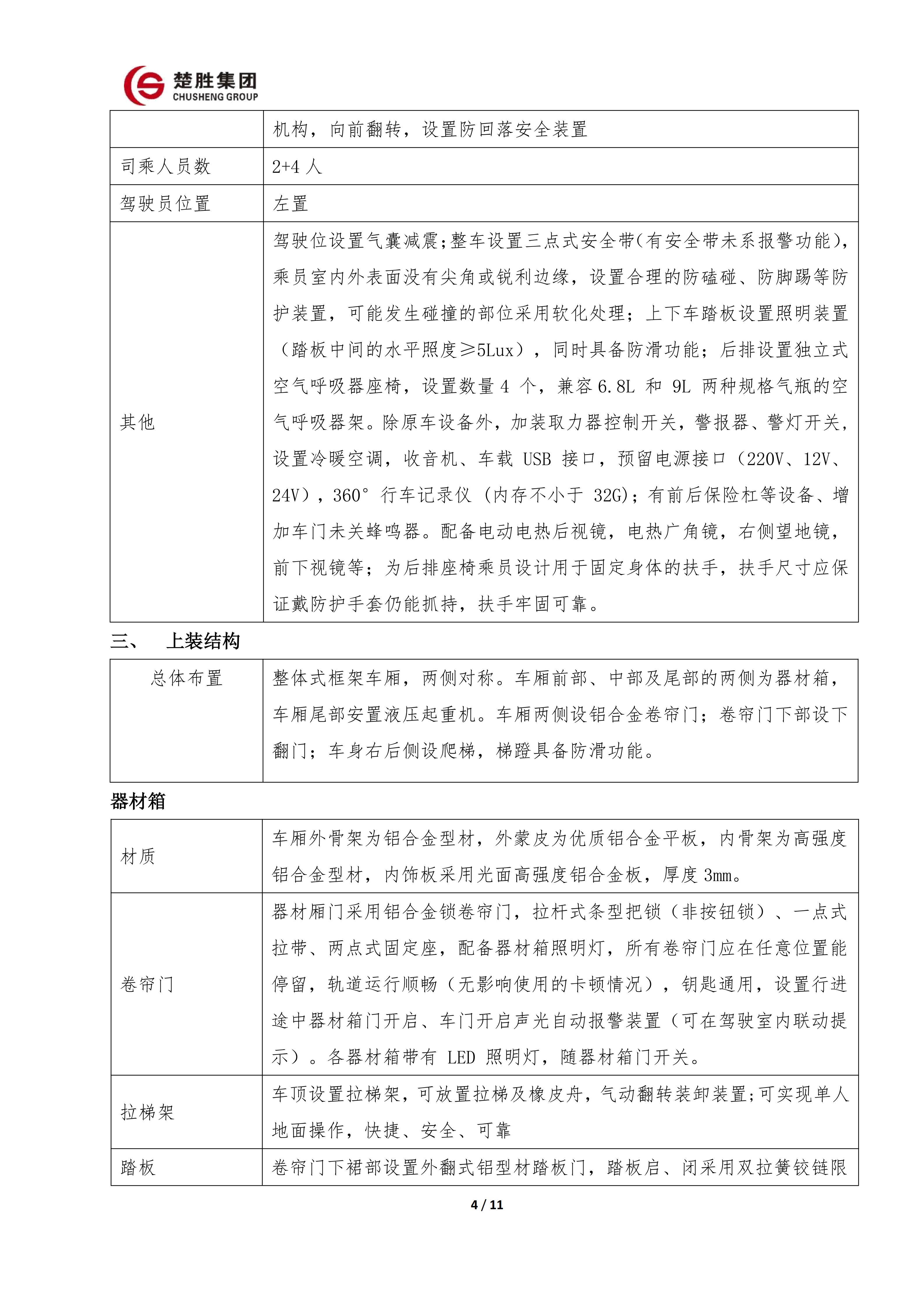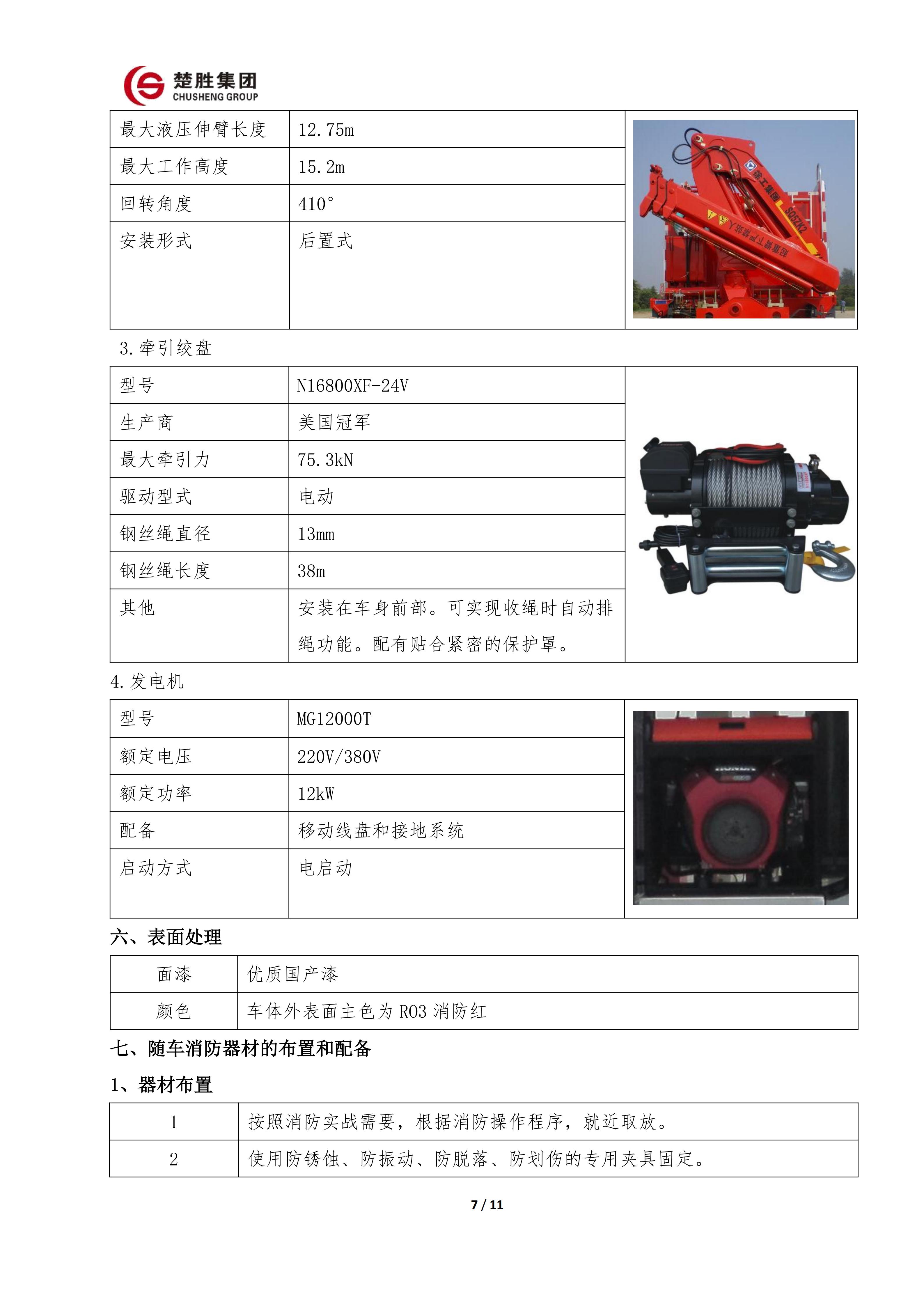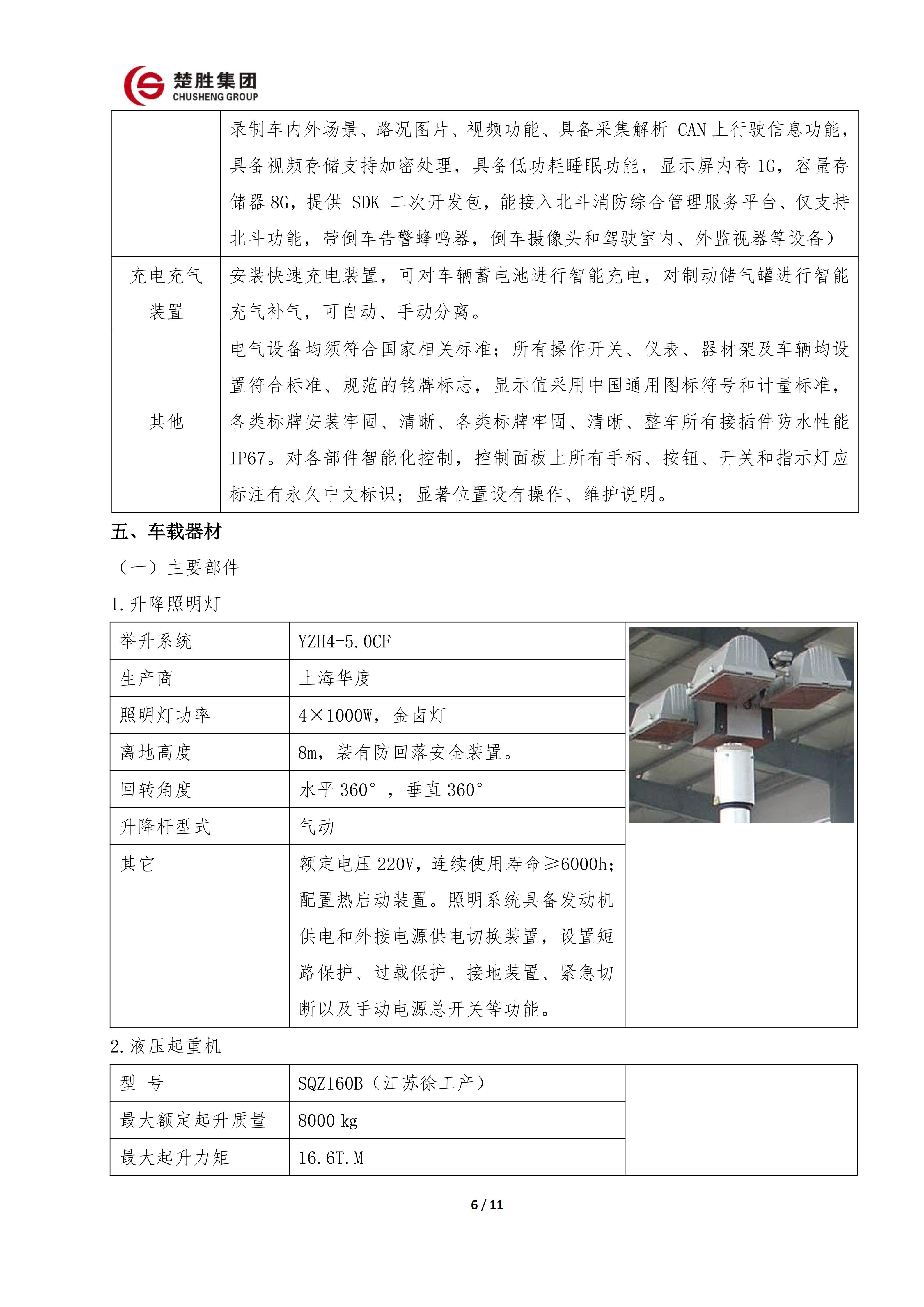 楚胜牌 CSC5030TXFQC10/CC6 型器材消防车