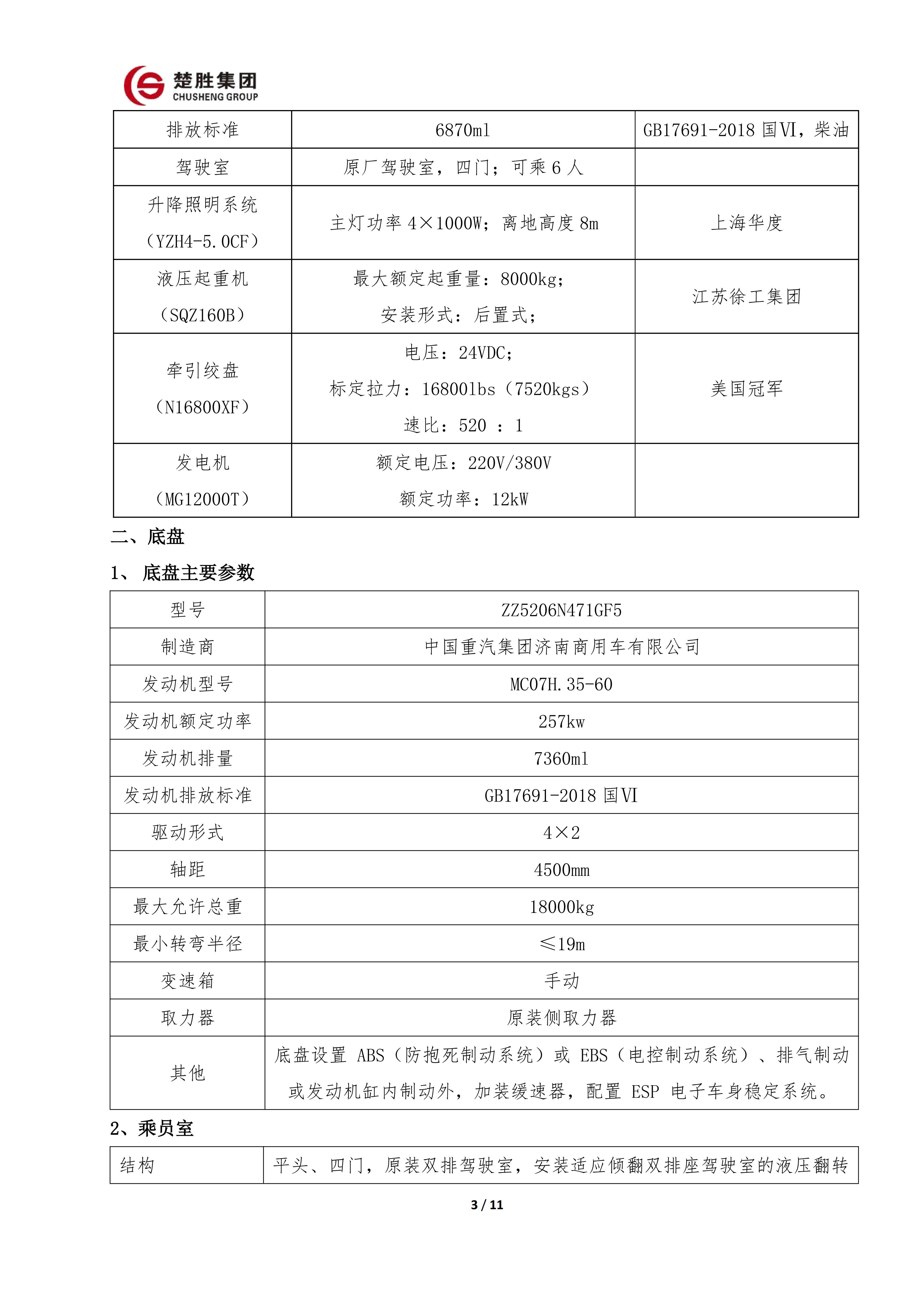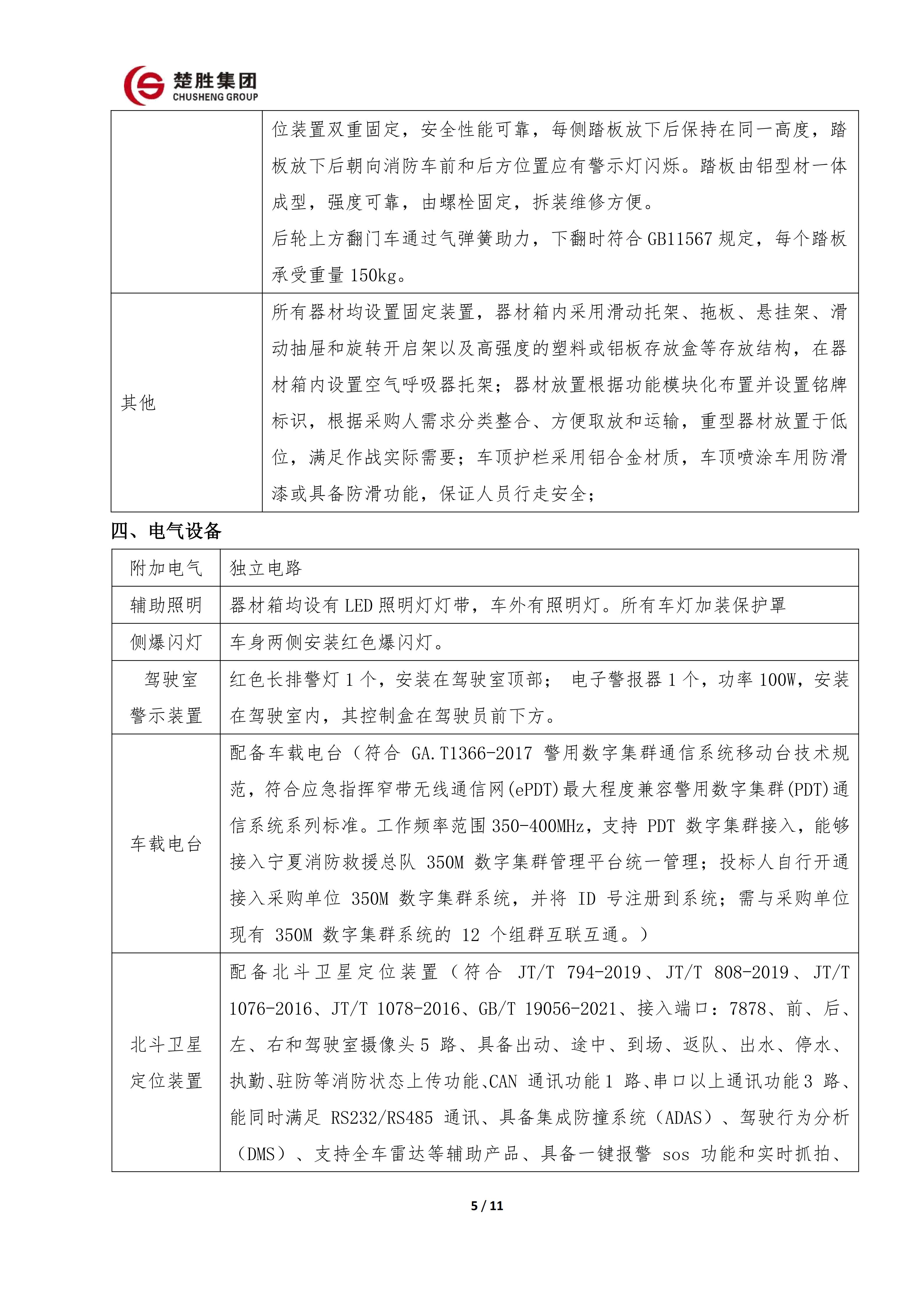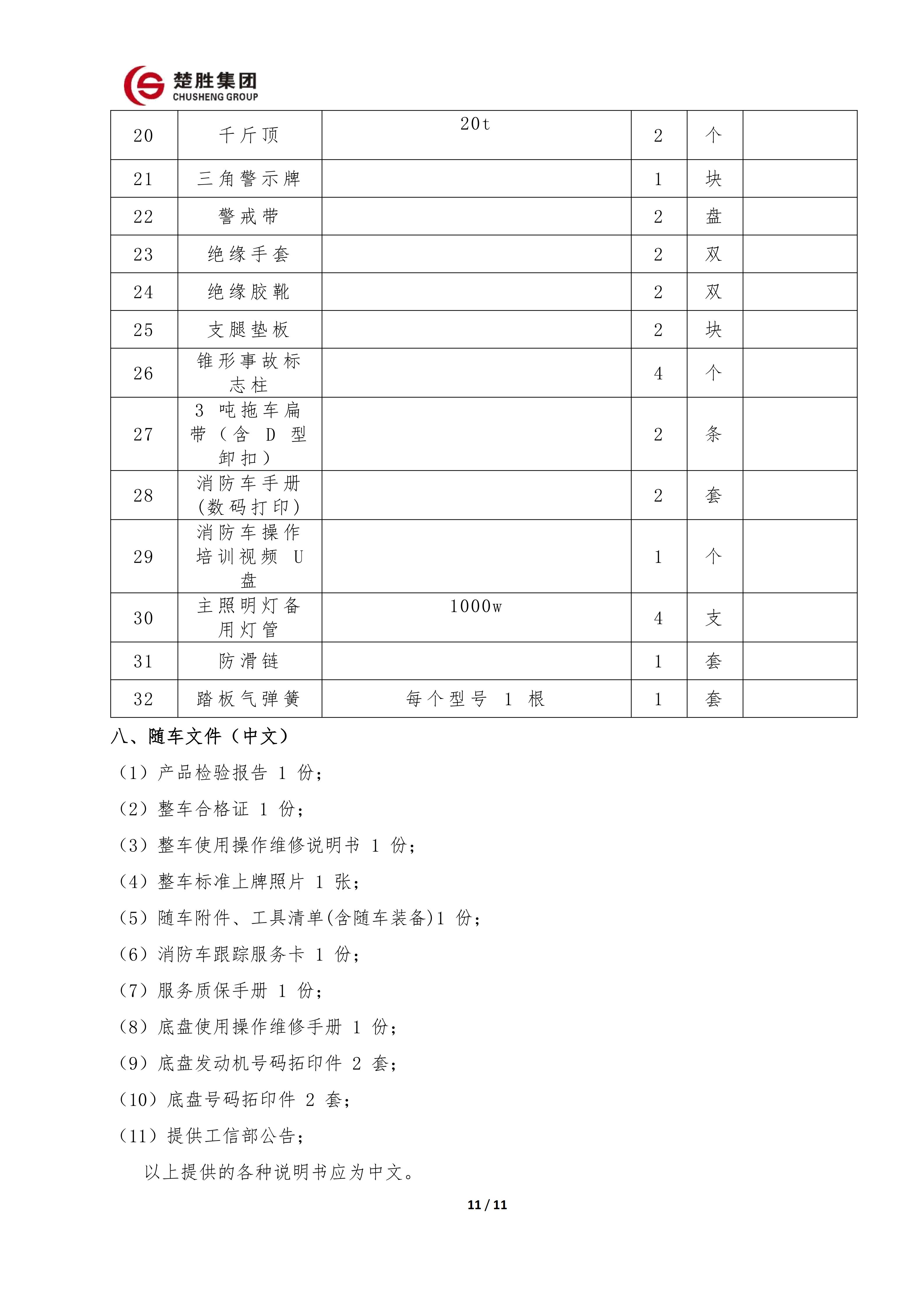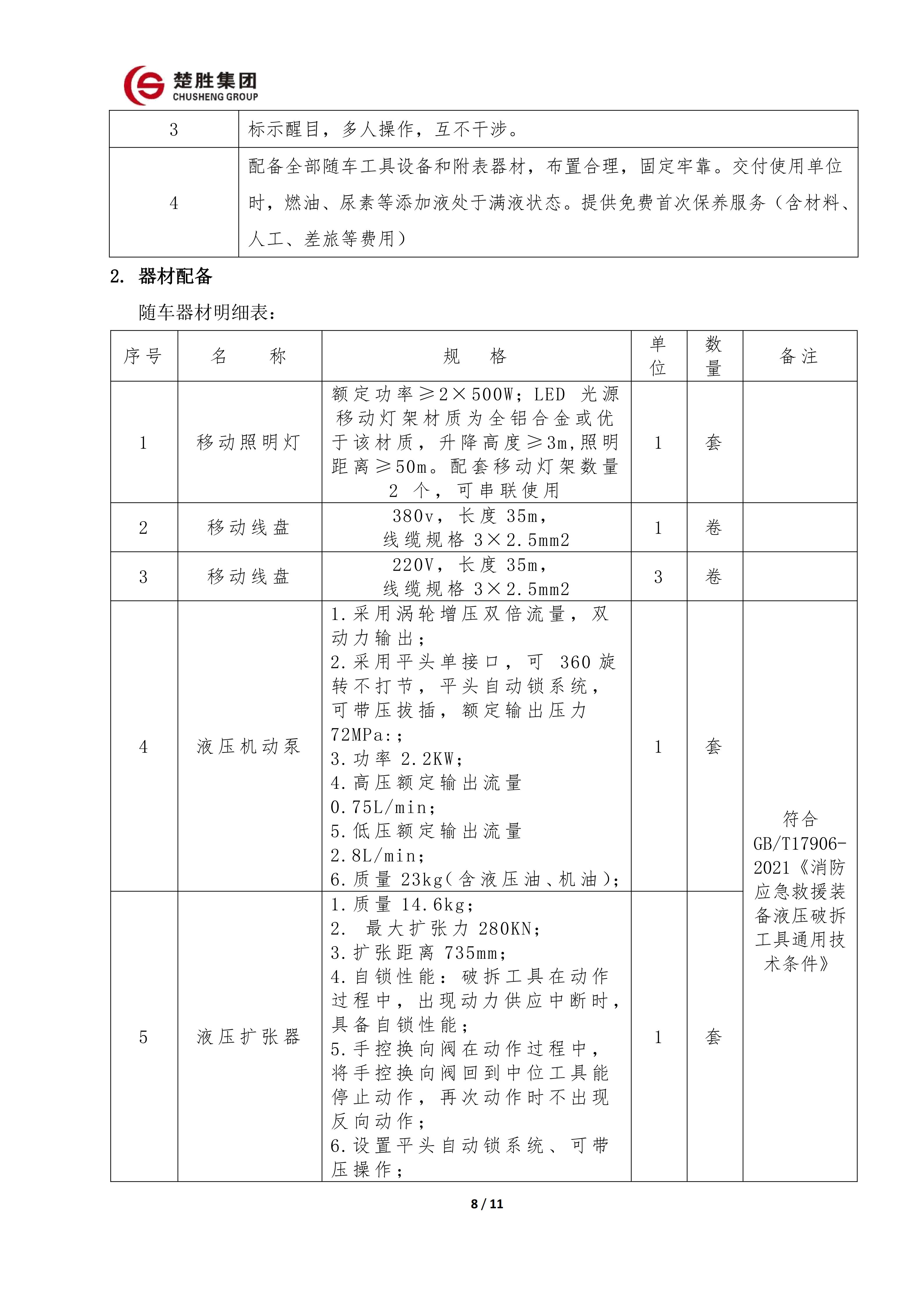 楚胜牌 CSC5030TXFQC10/CC6 型器材消防车