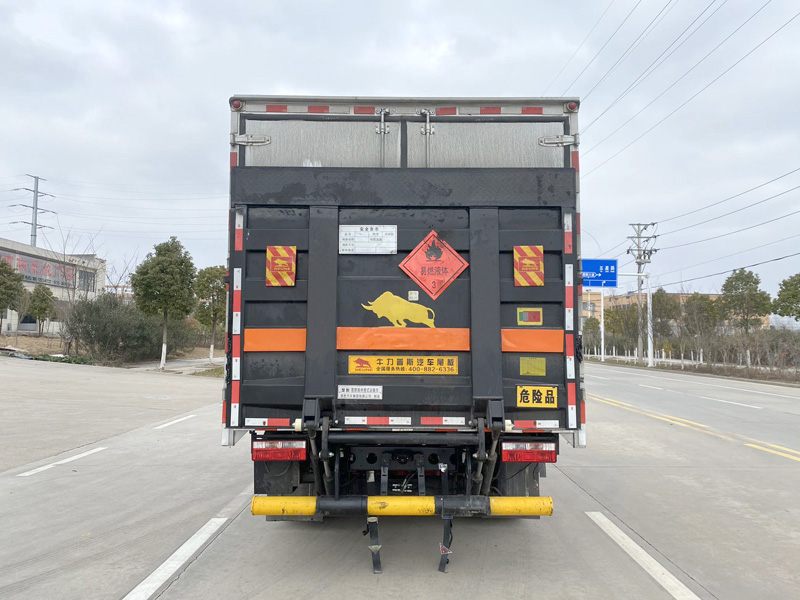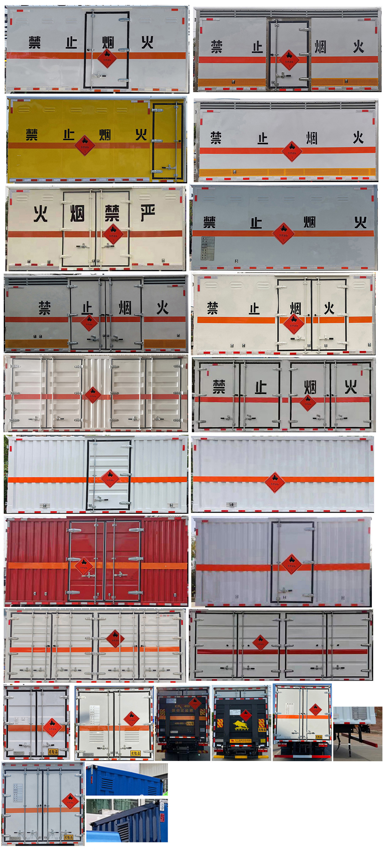 | 其它: | 1、该车适用于运输危险品,运输具有独立容器(瓶)包装的物品,运送危险物品类项号:3。厢体顶部封闭,不可开启。2、侧、后防护材料均为Q235,螺栓连接,后防护截面尺寸(mm)φ125,下边缘离地高460mm。选装后部无尾板,选装后部无尾板时后防护材料为Q235,焊接,截面尺寸(mm)100×50,下边缘离地高460mm。3、仅选用排气管前置、限速装置(限速80km/h)、前轮盘式制动及子午线轮胎的底盘,转向轮安装轮胎爆胎应急防护装置。安装带有卫星定位功能的行驶记录仪。ABS系统控制器型号/生产厂家: ABS/ASR-24V-4S/4M/襄阳东风隆诚机械有限责任公司。发动机/油耗值(L/100km)对应关系为: ZD30D16-6N/17.2,YCY24140-60/16.5, NV30-C6G/17.3, CY4SK261/17.4, YCY30165-60/17.5, CY4BK361/17.9。选装ETC。随底盘选装驾驶室。厢体侧面选装开门型式及位置,选装不带侧开门,选装厢体样式,厢体侧面板选装开百叶窗。仅采用轴距3308mm。尾板收起状态水平长度为290mm,尾板质量为420kg。 | ||