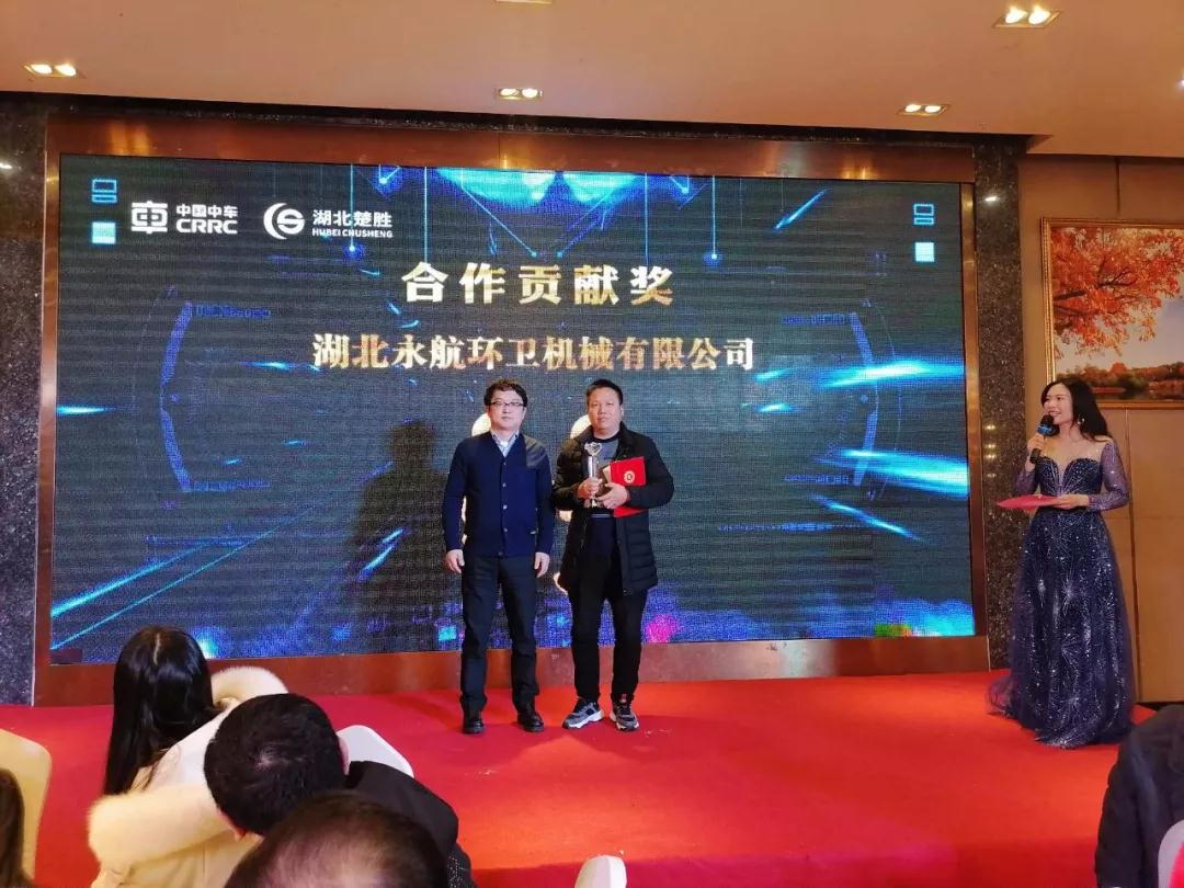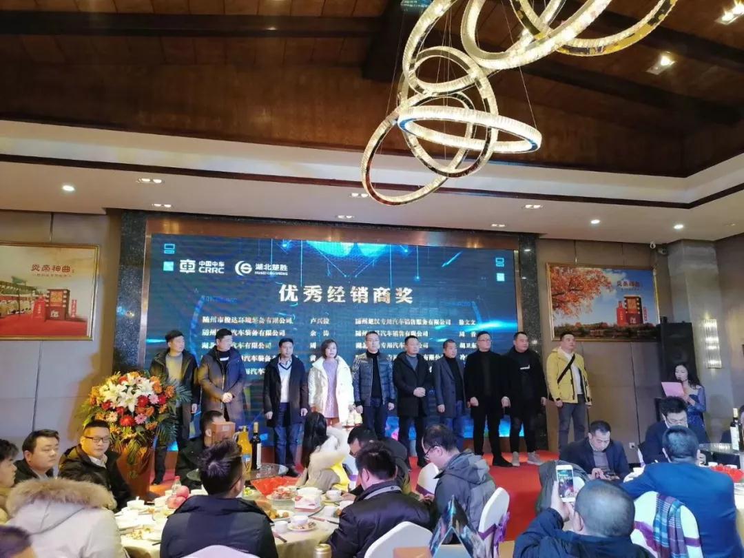 湖北楚胜公司总经理**小康**先上台致辞。**总表示,2019年是充满挑战和机遇的一年,在刚刚过去的一年里,湖北楚胜收获了累累硕果,成绩斐然,2020年,湖北楚胜将继续砥砺前行,整合所有资源,抓住发展机遇,共创更美好的未来。本次盛会设立了合作贡献奖一名、**经销商奖十名,锐意进取奖五名,中车**董事长顾一峰、湖北楚胜公司董事长张特夫、楚胜公司总经理**小康分别为获奖者一一颁奖。