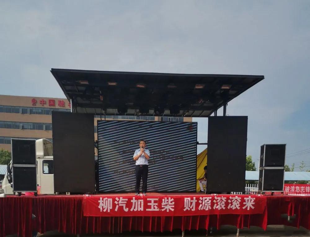 烈日下美女们火辣辣的开场舞之后湖北加贝的代表贺总和楚胜集团的代表董总分别上台讲话,对此次活动的举办以及乘龙L3“龙腾天下”洒水车的上市表示大力的支持和美好的愿景!