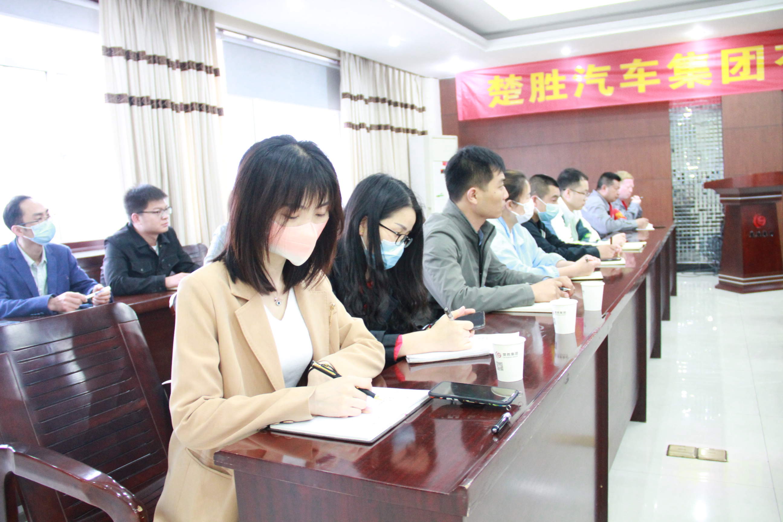 楚胜汽车集团党总支书记、副董事长傅冠生、总裁王小康等公司领导以及职工代表共50余人参加了会议。