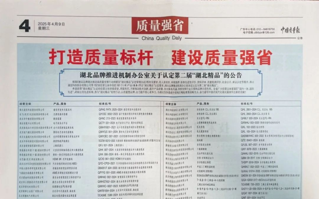 “湖北精品”由湖北省市场监管局、省经信厅等多部门联合推动,是全省制造业领域的“优中选优”工程,代表湖北产业技术最高水平和质量最强口碑。评选需通过材料初审、现场核查、专家评审、社会公示、动态监管五大环节,对标国际先进标准,聚焦“技术领先、质量卓越、品牌高端、效益突出”四大维度,堪称湖北制造的“金字招牌”。