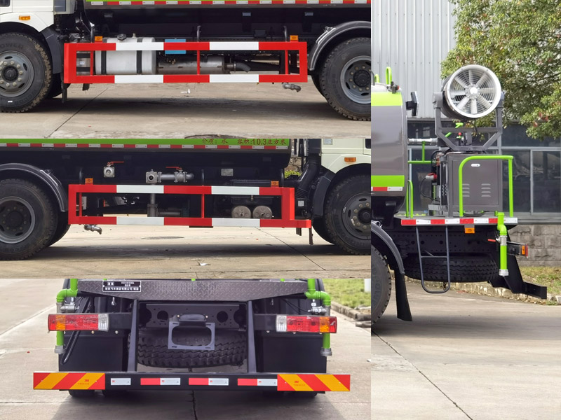 | 其它: | 1、该车用于路面洒水及园林绿化,主要专用装置为喷洒总成.罐体总容量:10.8立方米,罐体有效容积:10.3立方米.罐体外形尺寸(长×长轴×短轴)(mm):4250×2400×1450.2、侧、后防护材料均为Q235,螺栓连接,后防护截面尺寸130×60mm,下边缘离地高435mm.3、随底盘选装前围和灯具,选装宽体保险杠脚踏板.ABS型号/厂家:CM4XL/长春瑞立科密汽车电子有限公司.仅选用轴距4500mm.整车外形尺寸长/前伸量对应关系为(mm):8640/650,7990/0.选装驾驶室前部无自动水炮,选装后部不带雾炮结构.随底盘装备限速装置,限速89km/h. | ||