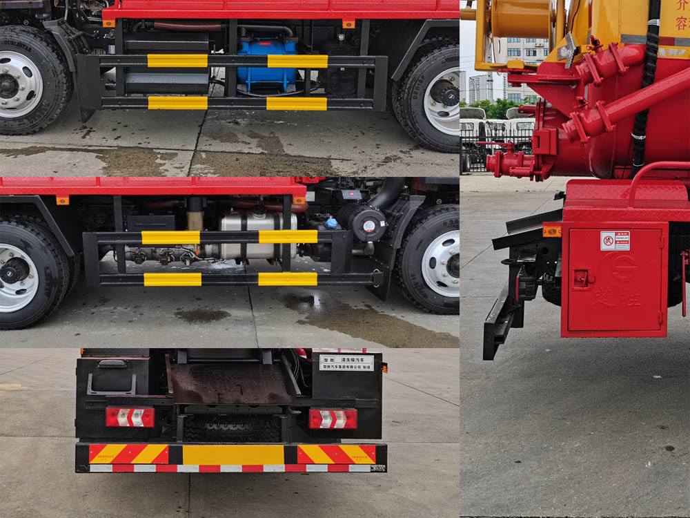 | 其它: | 该车用于下水道疏通清洗及吸污并具有举升功能,主要专用装置:罐体和清洗吸污装置.罐体外形尺寸(总长×直径)(mm):5000×1750,其中罐体前段1800mm为清水罐,清水罐总容量4立方米,有效容积4立方米; 罐体后段3200mm为污水罐,污水罐总容量7.27立方米,有效容积6.93立方米;清洗、吸污两种功能不可同时使用,两个罐体不能同时满载.侧、后防护材料均采用Q235,侧防护螺栓连接,后防护焊接,后防护截面尺寸(mm):200×50,离地高450mm。ABS型号/厂家: ZQFB-V/西安正昌电子股份有限公司.仅选用3800mm轴距底盘,随底盘选装驾驶室. | ||